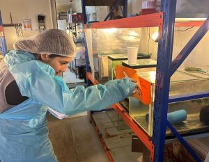 Al ser especies muy amenazadas es bastante común que estén bajo el cuidado profesional por proyectos de conservación. El trabajar a diario con ranas y sapos, me dio la posibilidad de observar cómo se comportan, cómo se relacionan entre ellos y con los cuidadores, allí comencé a recopilar información de este grupo para poder cubrir sus necesidades correctamente. Ya sea preguntando a expertos o revisando bibliografía y entonces, el resultado siempre era que faltaban estudios sobre su sintiencia, y sobre algo muy importante que es el dolor, el cual puede afectar negativamente al bienestar y que, en este caso, fue mi motivación para saber cómo se puede reconocer y así, se pueda brindar la ayuda adecuada a estos pequeños. Luego, encontré el Magíster en Bienestar Animal UDLA y fue el nicho correcto para desarrollar esta investigación.