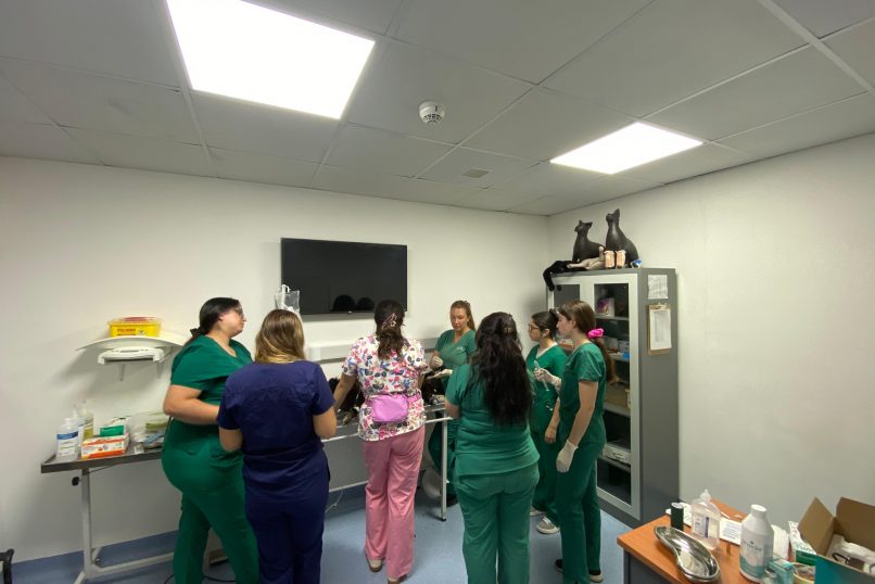 El Director de Carrera, Mario Morales, explicó que el equipo se encuentra coordinado con el Colegio Médico Veterinario (Colmevet), trabajando directamente con sus profesionales que están en terreno. “La idea es que, si detectan necesidades especiales, nos deriven pacientes, de modo que podamos organizarnos como equipo y entregar una atención adecuada a quienes necesitan tratamiento, contando con la cantidad de pacientes que nos permita dedicar el tiempo que cada uno requiere”, señaló.