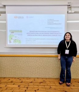 En la instancia, presentó la ponencia “Bienestar psicosocial en estudiantes afectados por los incendios: investigación y vinculación con el medio en el sur de Chile”, cuyo propósito fue analizar las configuraciones, tensiones y desafíos que enfrenta el estudiantado de sectores rurales en contextos de emergencias naturales. El estudio consideró cómo estos eventos impactan su vida cotidiana, sus relaciones familiares y su vínculo con la naturaleza.