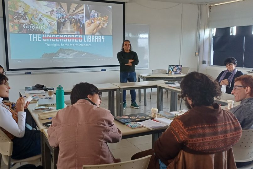 La agenda del Dr. Cáceres también incluyó su participación en el seminario “Literatura electrónica, interacción e Inteligencia Artificial”, coordinado por el Dr. Rodolfo Mata y el Mtro. Vinicius Marquet. Fue en este espacio donde su trabajo encontró una resonancia particular. La presentación sobre las prácticas literarias en los videojuegos provocó un debate que abordó preguntas sobre la naturaleza de la creatividad en la era digital.