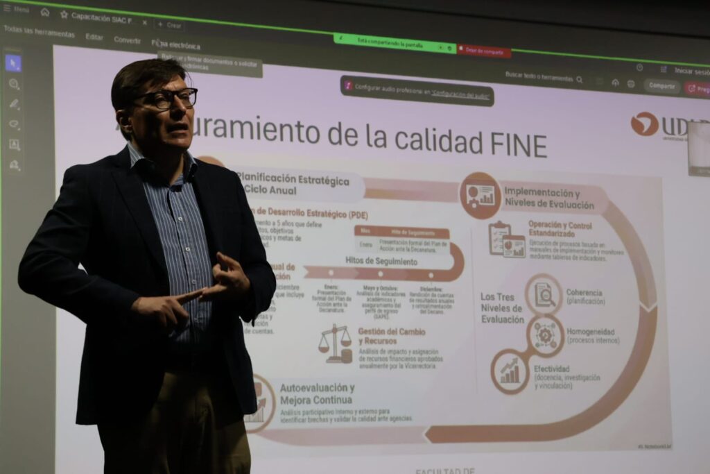 El cuerpo académico de la Facultad de Ingeniería y Negocios (FINE) participó en la segunda versión de la capacitación sobre el Sistema Interno de Aseguramiento de la Calidad (SIAC), con el objetivo principal de continuar fortaleciendo la cultura de calidad al interior de la facultad, realizar la inducción a nuevos colaboradores y preparar al equipo para la futura evaluación interna que realizará la Vicerrectoría de Aseguramiento de la Calidad y Análisis Institucional respecto del SIAC FINE a fines del mes de abril.