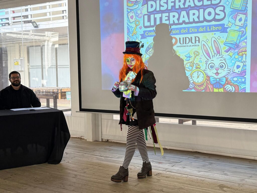 El programa finalizó con la segunda versión del concurso de disfraces literarios, en el que se presentaron personajes reconocidos de distintos libros y series. El primer lugar de la competencia lo obtuvo la estudiante de la carrera de Fonoaudiología, Millaray Guzmán, quien se caracterizó de “Eclipse”; el segundo lugar fue para Victoria Tolosa, de Traducción e Interpretación en Inglés, con “El sombrerero loco”; el tercer lugar para Laura Albiña, de la misma carrera con “Paddington El Oso”, y se destacó a la académica de esta carrera, Valeria Duarte, quien presentó el personaje “The Rose the hat”.