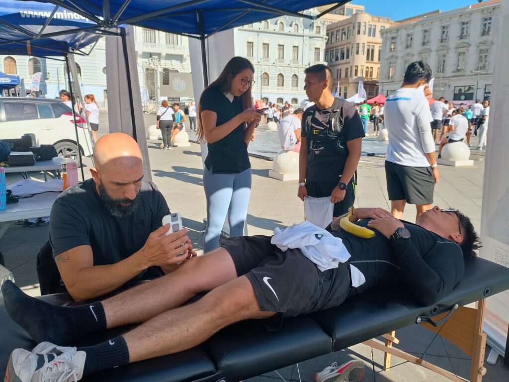 Durante la jornada, se evaluó a más de 40 participantes antes y después de la competencia, con el objetivo de revisar el estado de los tejidos y de las extremidades inferiores, junto con la capacidad pulmonar. Estas acciones permitieron orientar a los corredores sobre su condición física en relación con el esfuerzo realizado durante la actividad.