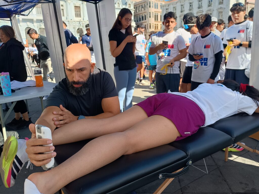 Por otra parte, en la Corrida Familiar de Valparaíso, realizada en Plaza Sotomayor en el marco del Día Nacional del Deporte, el académico investigador de la Facultad de Salud y Ciencias Sociales, Dr. Maximiliano Torres, y la estudiante de quinto año de Kinesiología Beatriz Morales, realizaron evaluaciones a competidores.