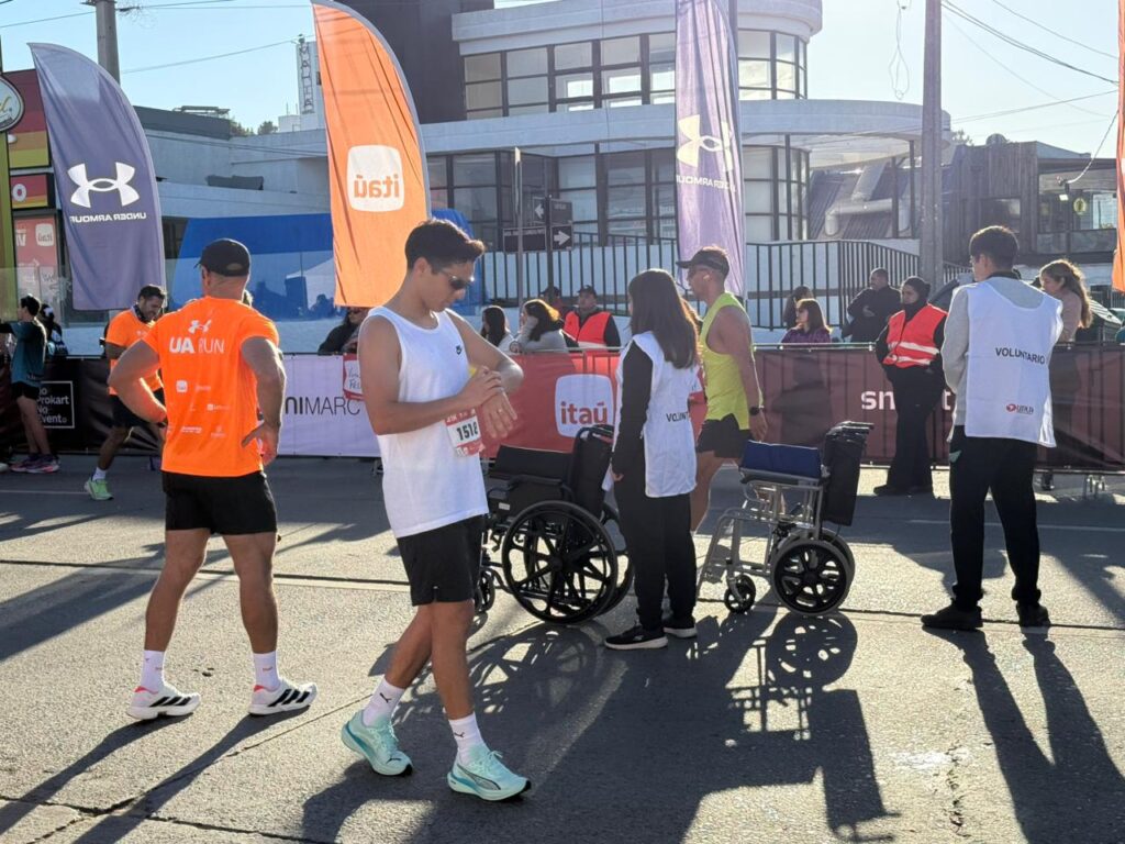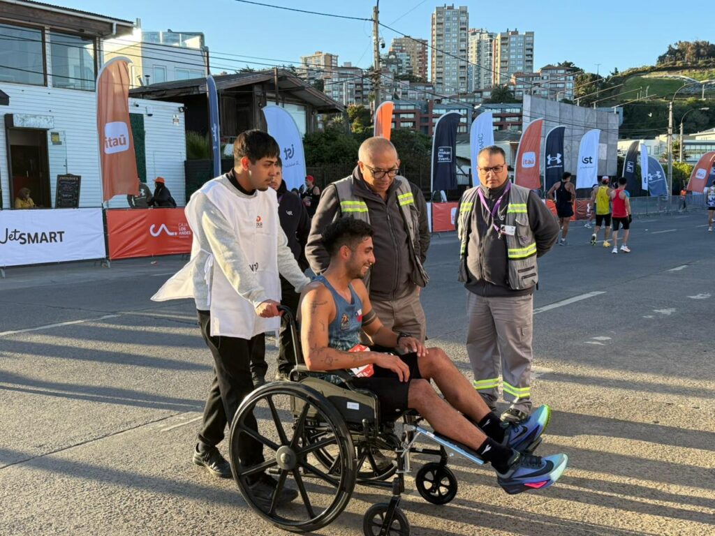 Paulette Ávila, estudiante de tercer año de Enfermería, dijo que “vivir la media maratón desde la zona de la meta fue un desafío. Tuvimos la misión de monitorear la estabilidad de los atletas que llegaban, tanto con deshidratación, náuseas o alguna lesión y los trasladamos en sillas de ruedas. Colaboramos de forma precisa y pronta a los atletas más descompensados, junto con el centro de primeros auxilios proporcionado por el Instituto de Seguridad del Trabajo. Es un orgullo representar a la Universidad aportando salud y seguridad a la comunidad deportiva de Viña”.