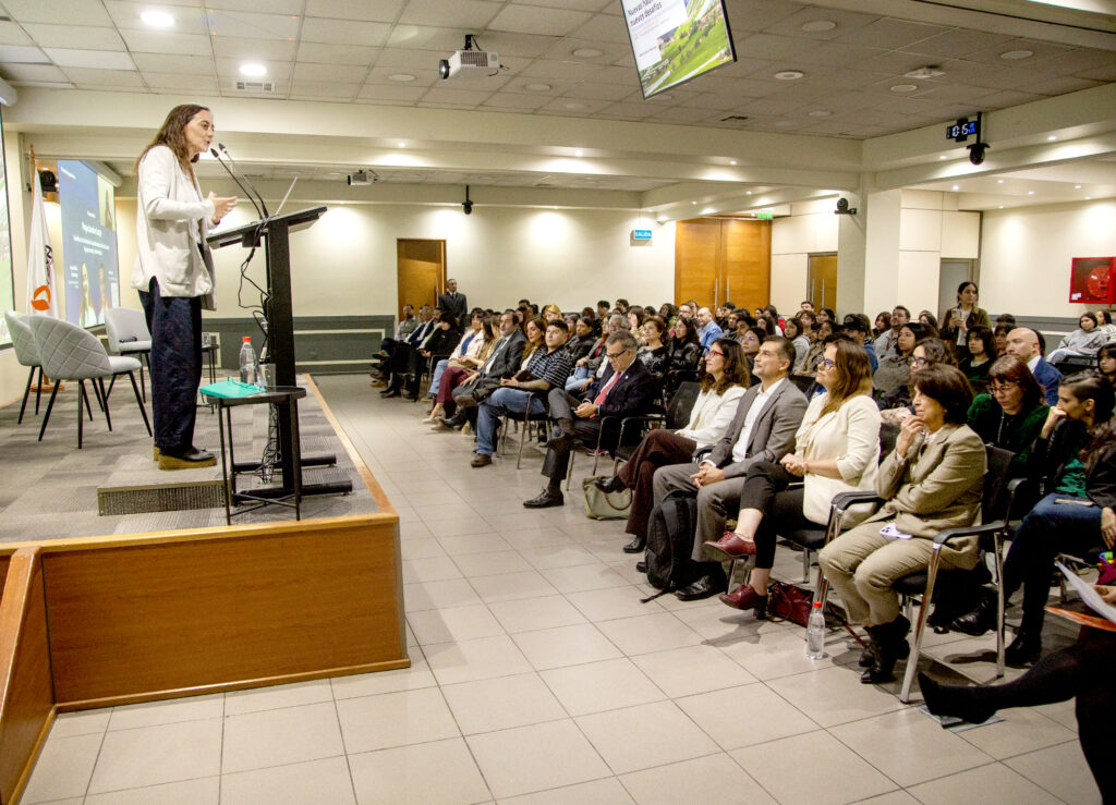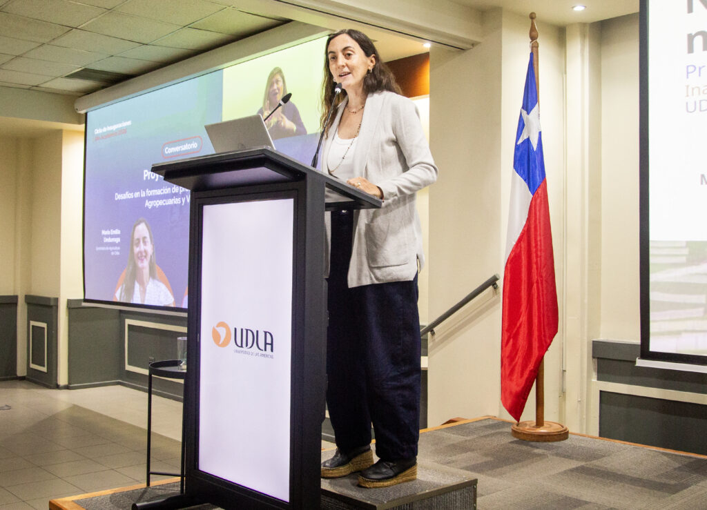 La exposición de María Emilia Undurraga puso énfasis en la necesidad de formar profesionales capaces de responder a un mundo marcado por el cambio climático, las transformaciones tecnológicas y las nuevas demandas sociales. A partir de su presentación, destacó que el principal desafío no es solo producir más alimentos, sino hacerlo mejor, con enfoque en la sostenibilidad, el bienestar de las personas y el desarrollo de los territorios, incorporando una mirada integral que vincula producción, salud y medio ambiente bajo el enfoque One Health.