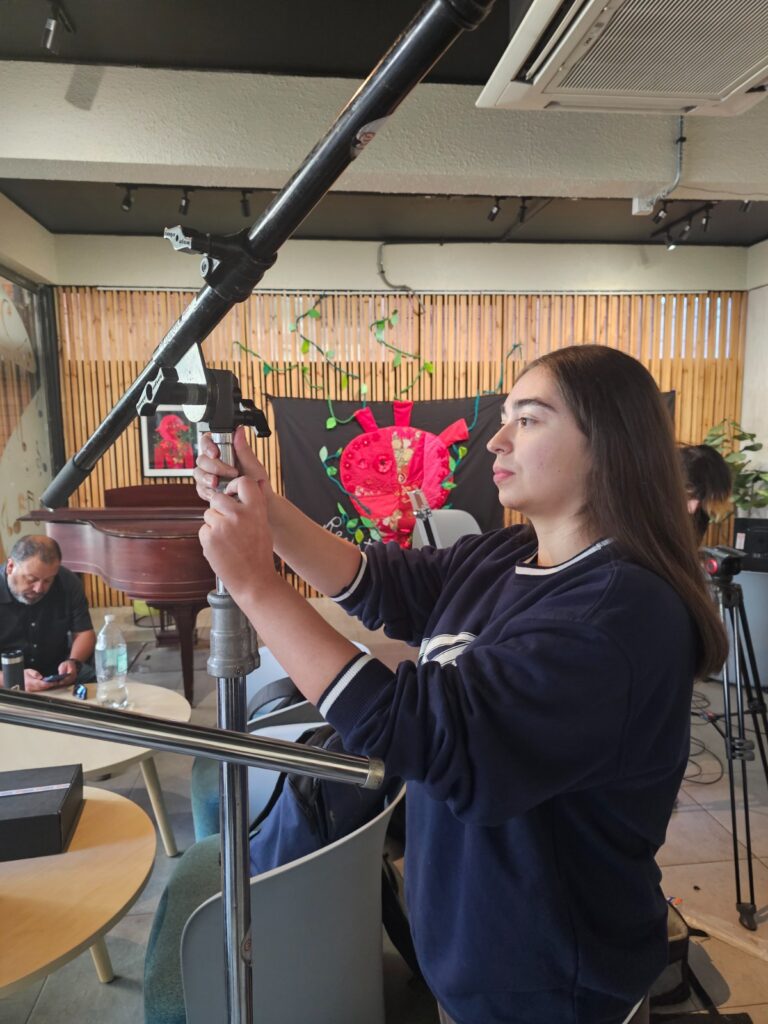 Fernando Espinosa, alumno de primer año de Comunicación Audiovisual y Multimedia dijo que, “Aceptamos esta oportunidad para desarrollarnos en un detrás de escena, quería vivir la experiencia de saber cómo se hace un video podcast, pude ver cómo se arma todo por ejemplo, trípodes, micrófonos e iluminación”.