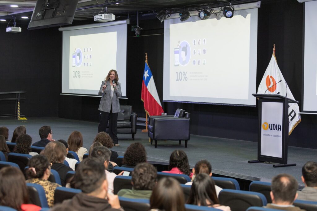 Paola Espejo sostuvo que “esta charla nos convocó a reflexionar sobre el contexto actual, marcado por la transformación tecnológica y nuevas dinámicas en el mundo del trabajo. Hoy, la formación universitaria requiere fortalecer el aprendizaje continuo, la capacidad de adaptación y una gestión activa del desarrollo profesional. Por ello, como Universidad, tenemos el desafío de formar a nuestros estudiantes integrando competencias, autonomía y herramientas digitales. Agradecemos a Denisse Goldfarb por compartir su experiencia y abrir este espacio de reflexión con nuestra comunidad educativa”.