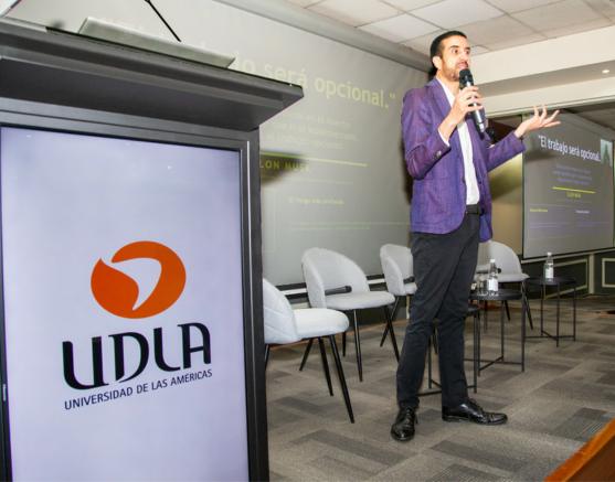 La Facultad de Ingeniería y Negocios (FINE) de Universidad de Las Américas (UDLA) inició el año académico con la charla magistral ¿Sobrevivirá tu profesión a la IA?, a cargo de Millán Sánchez, especialista en soluciones de Data & AI de Microsoft y referente en transformación digital en Latinoamérica. La exposición tuvo como eje central las transformaciones del mercado laboral impulsadas por la Inteligencia Artificial, y cómo nuevos perfiles emergen en torno a su desarrollo, gestión y ética.
