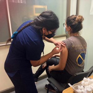 Académicos y estudiantes de la Escuela de Enfermería del Campus Maipú, en colaboración con personal...