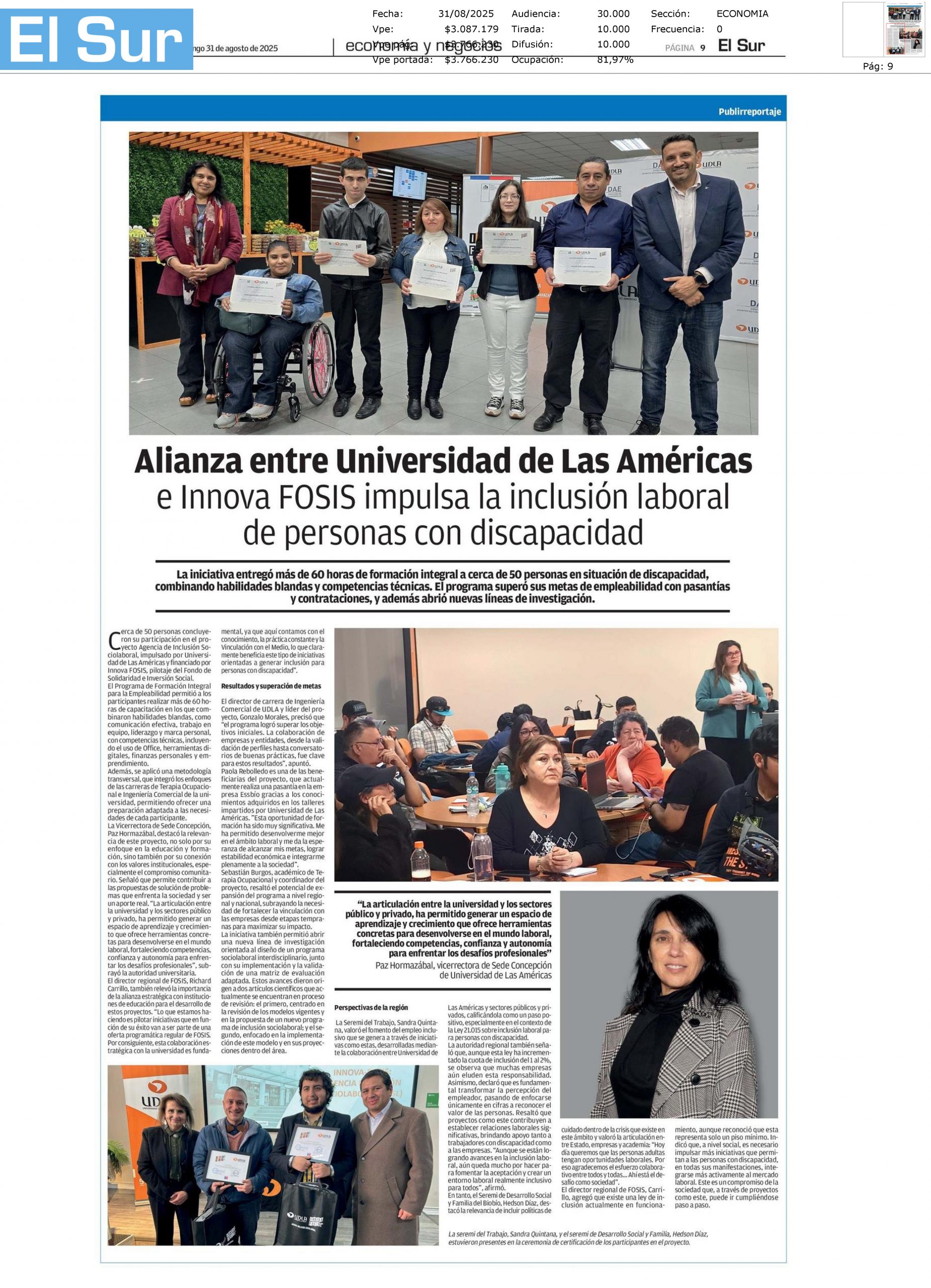 Publi Innova Fosis y UDLA, Diario El Sur, Sede Concepción